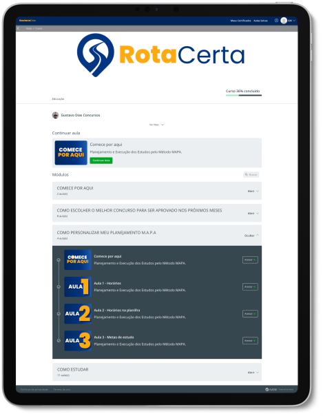 No Treinamento Rota da Aprovação eu te ensino o passo a passo de como escolher o melhor Concurso de acordo com as suas particularidades.